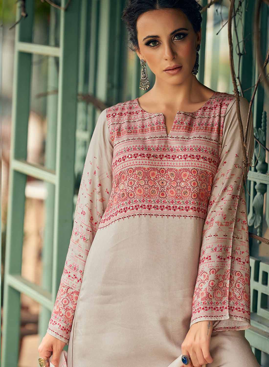 - Fabric Top: Viscose Pashmina Print with Fancy Hand Work 2.5 meters