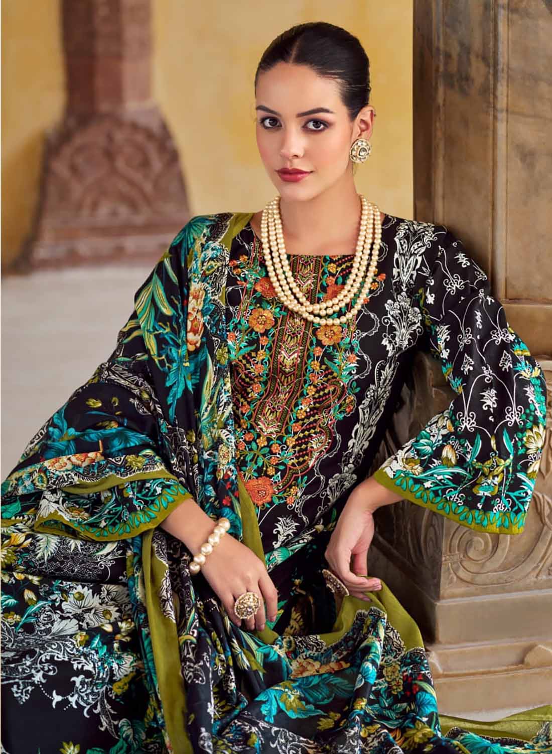 Women Black Pakistani Print Unstitched Pure Cotton Suit Dress Material