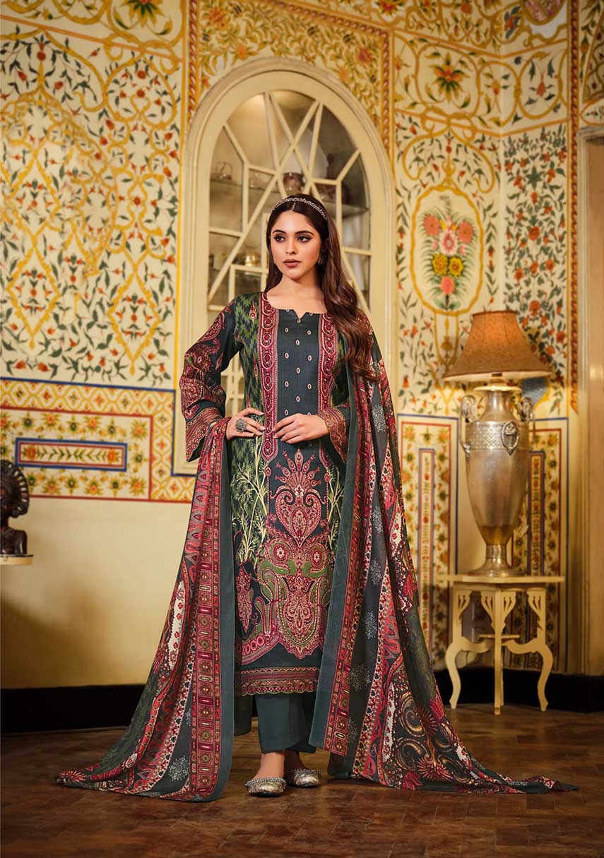Women Pakistani Print Green Unstitched Cotton Suit Dress Material