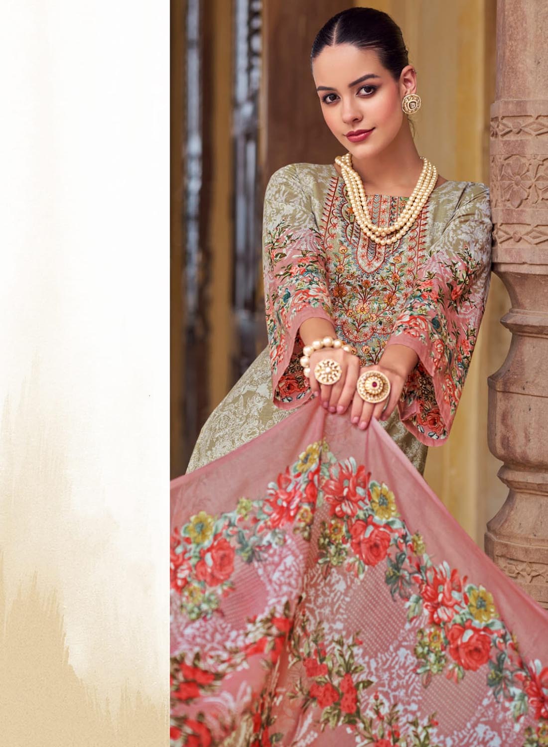 Women Pakistani Print Unstitched Cotton Suit Material with Embroidery