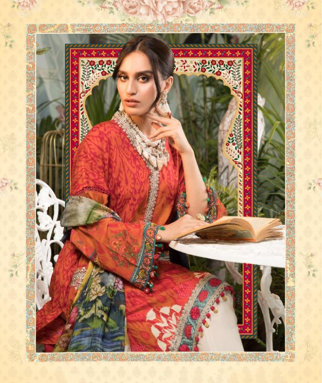 Women Unstitched Cotton Red Pakistani Suit Dress material