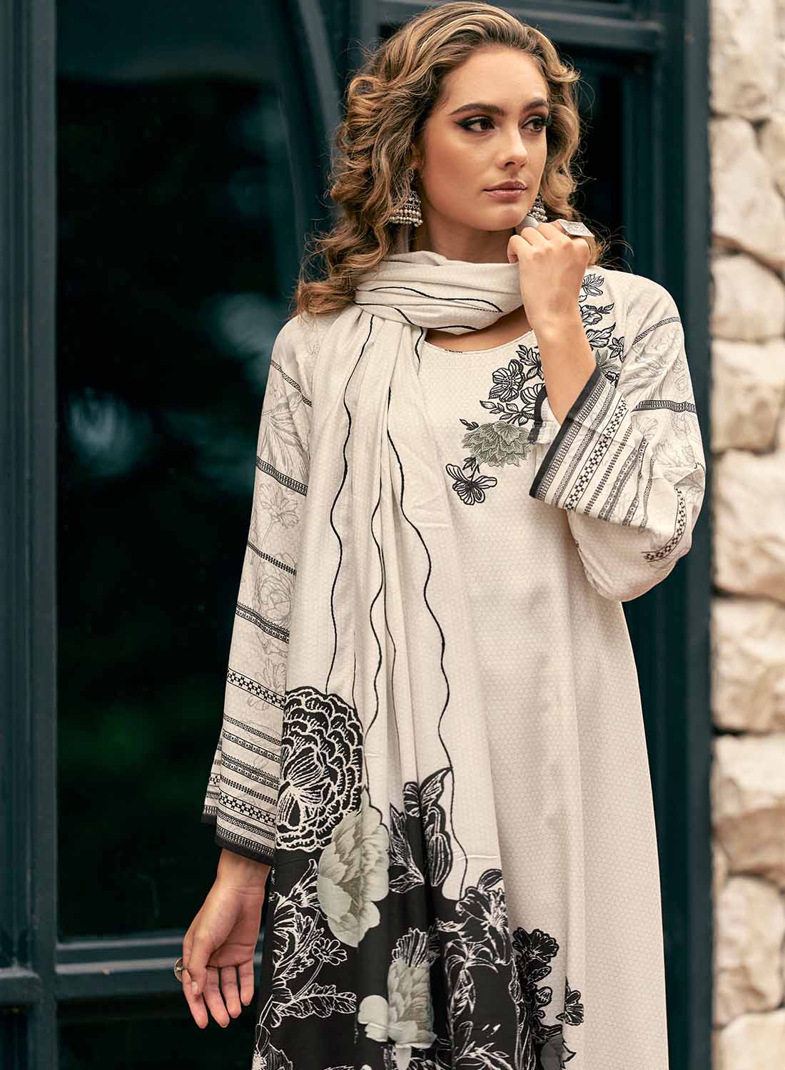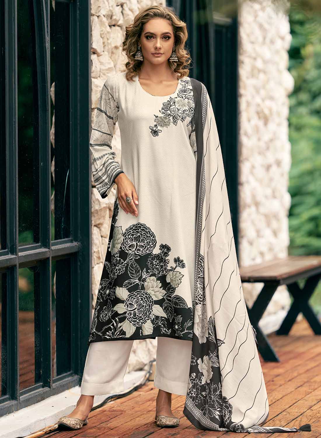- Dupatta: Pure Viscose Wollen Shawl with Print 2.25 meters