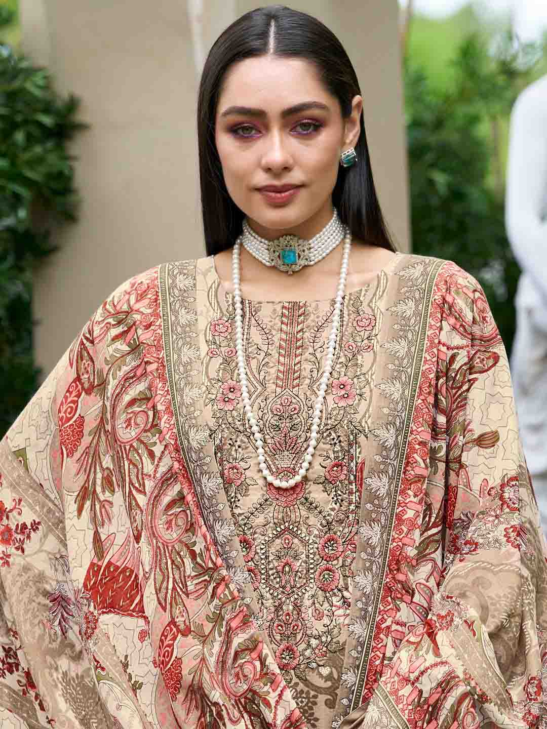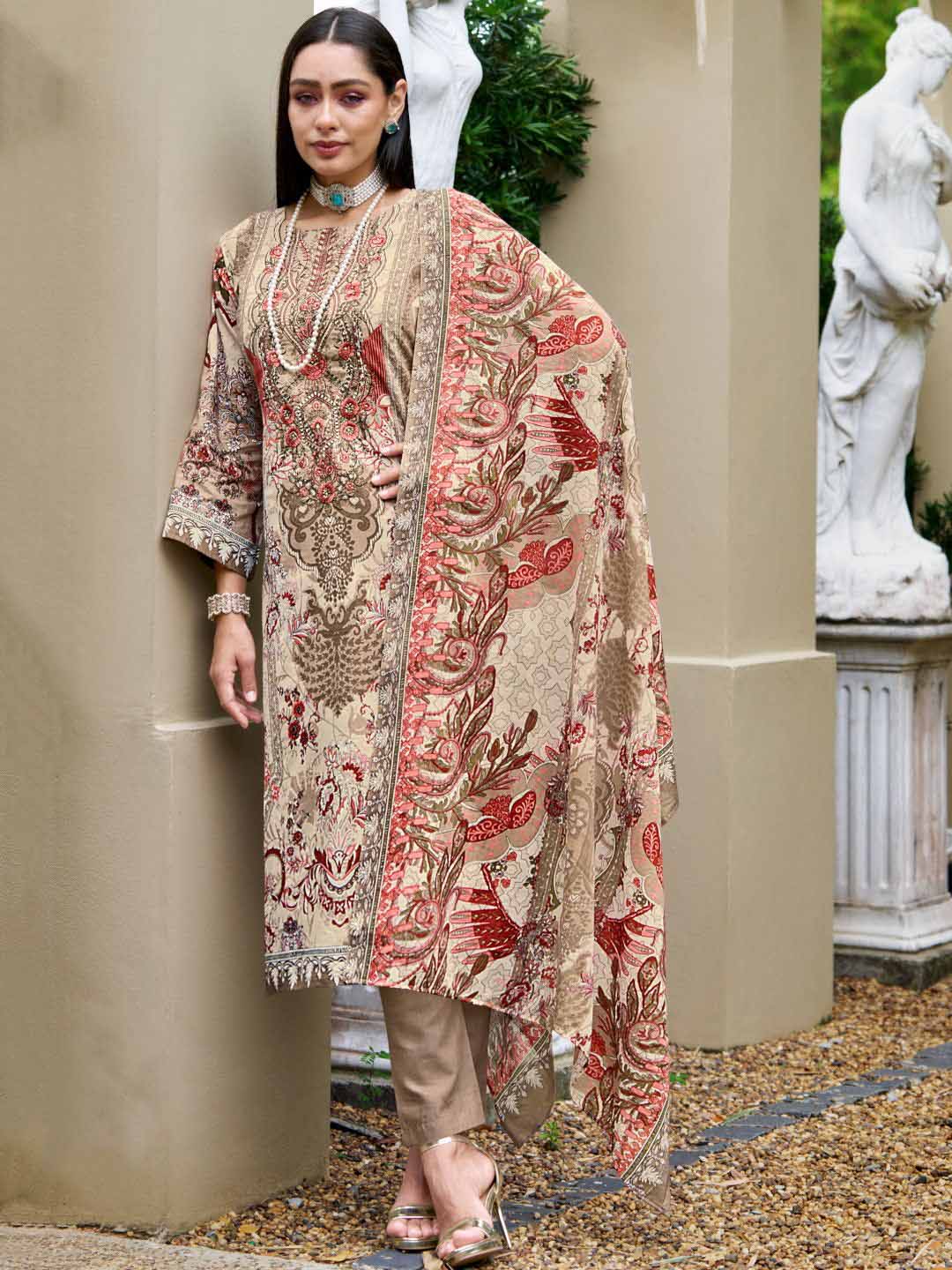 Women's Brown Pakistani Print Unstitched Cotton Suit Dress Material