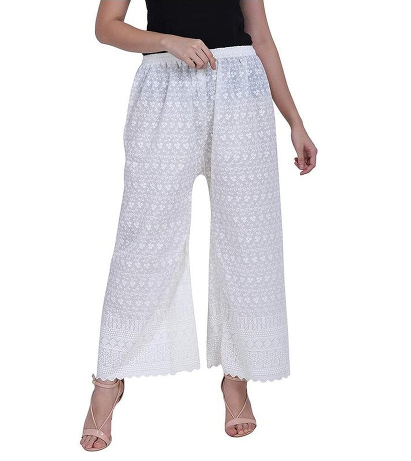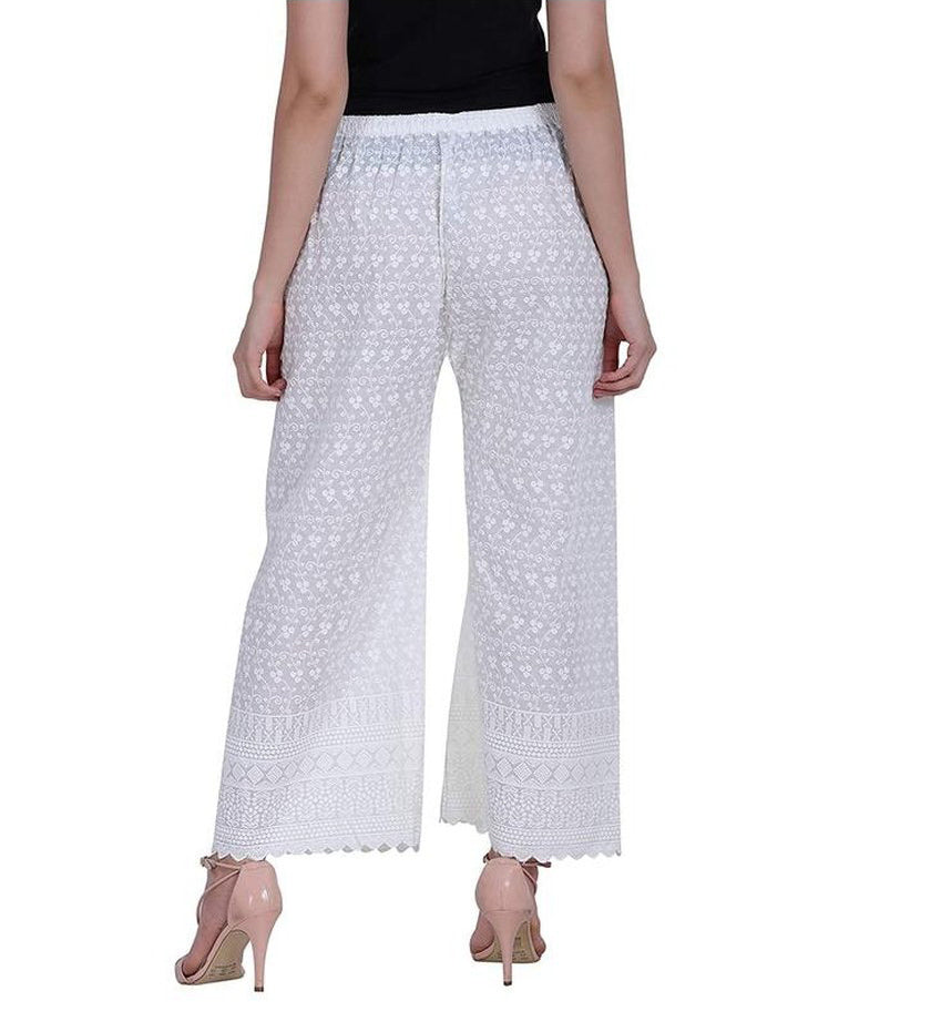 Women's Embroidered Cotton Chikankari Palazzo White