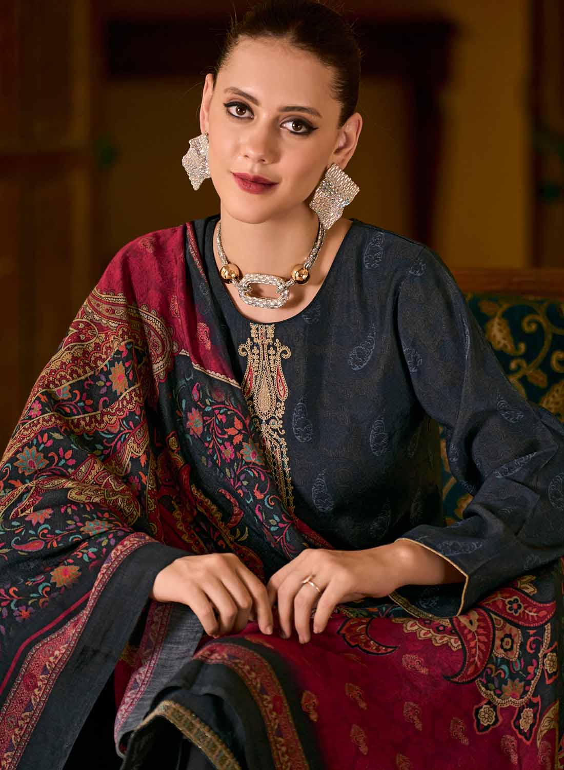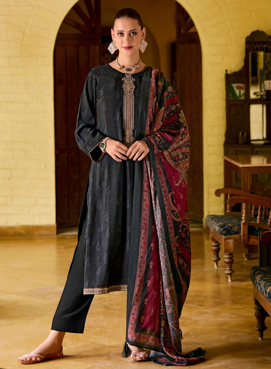 Black Party Wear Pure Muslin Unstitched Suit Material with Dupatta