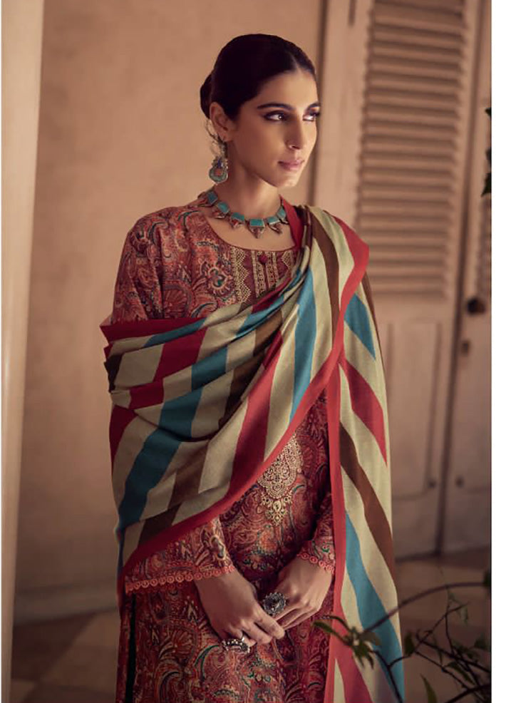 Women's Pashmina Winter Suit Dress Material with Embroidery