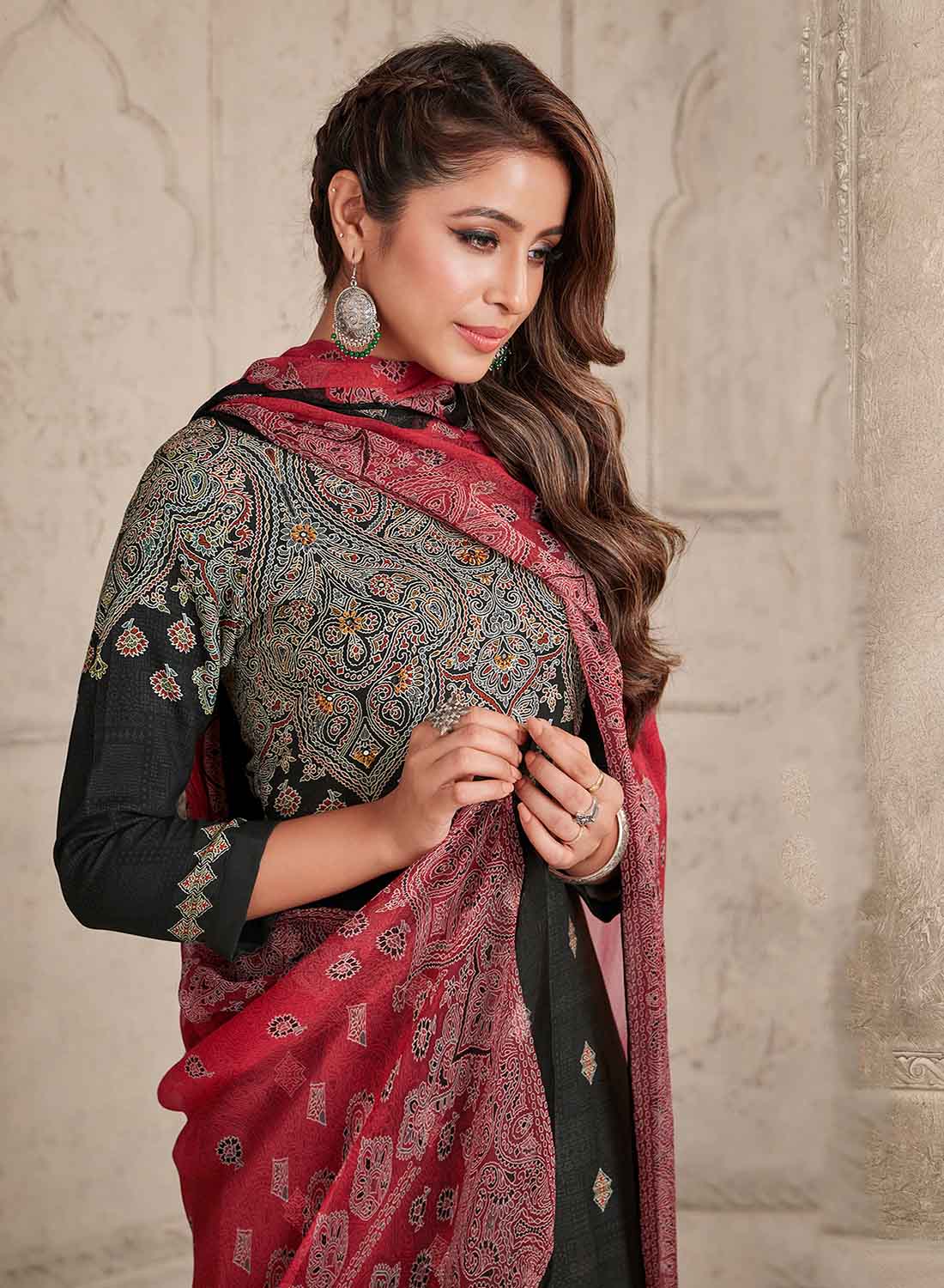 Women's Printed Black Pashmina Winter Suits Dress Materials