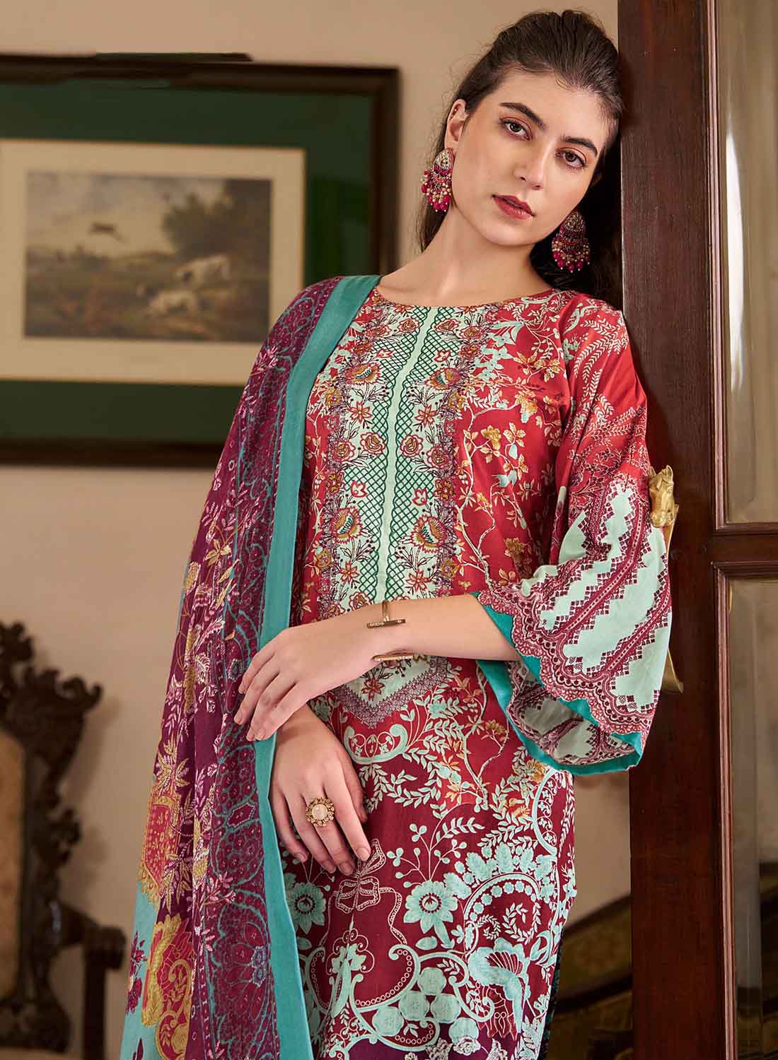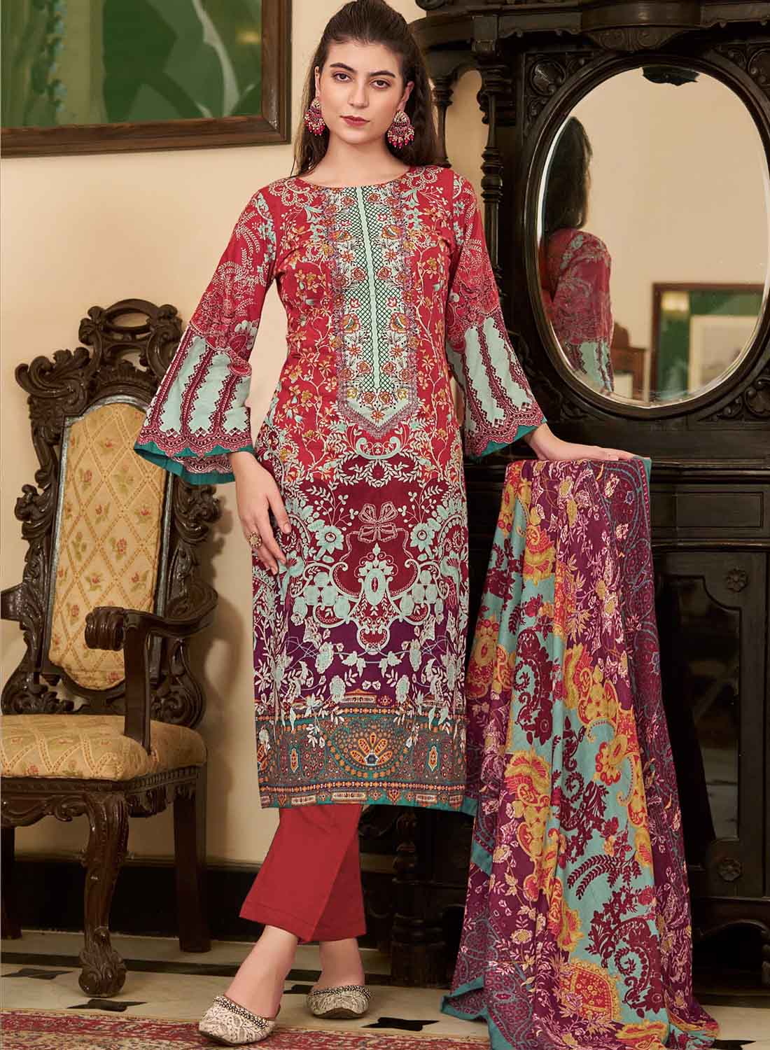 Women's Red Pakistani Print Unstitched Cotton Suit Dress Material