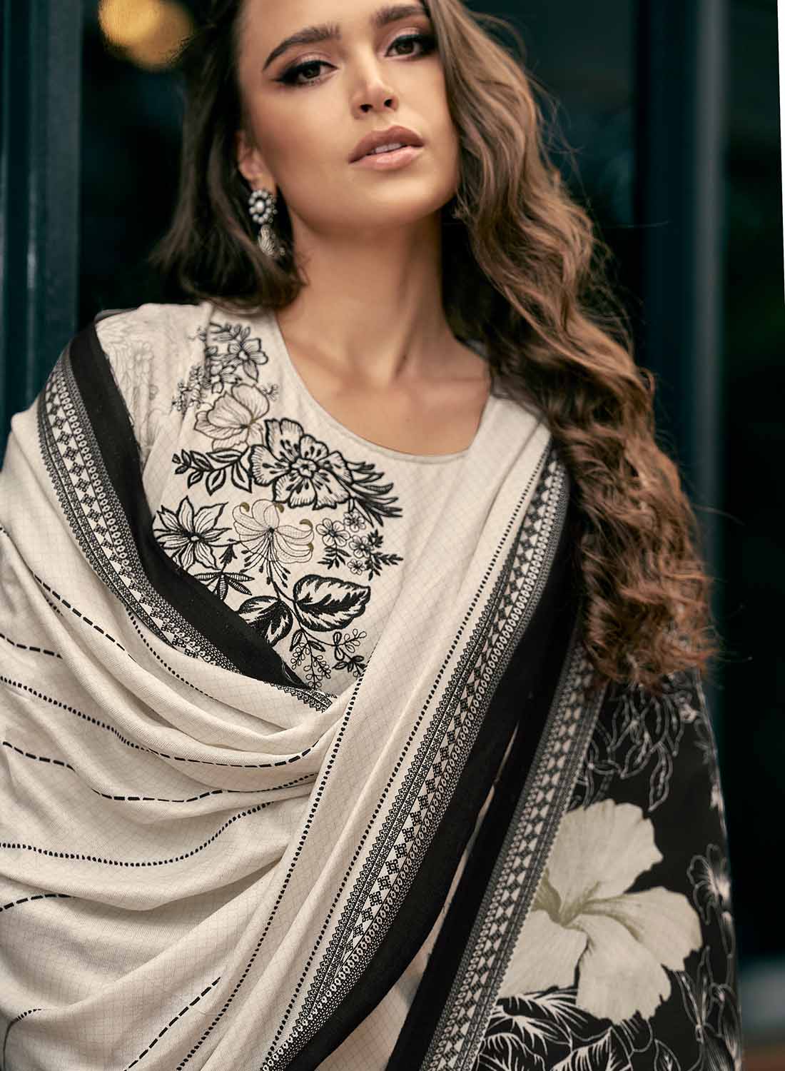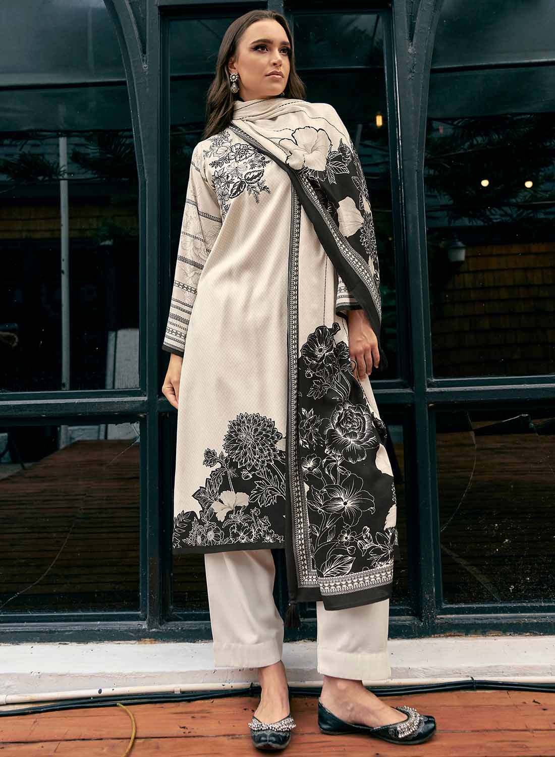 Women's White Pashmina Unstitched Winter Salwar Suit Dress Material