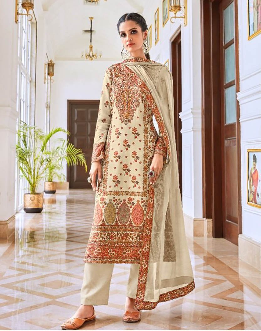 Pure Wool Pashmina Off-White Winter Unstitched Suit With Dupatta