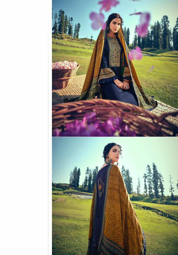 Woolen Pashmina Blue Winter Unstitched Suit With shawl