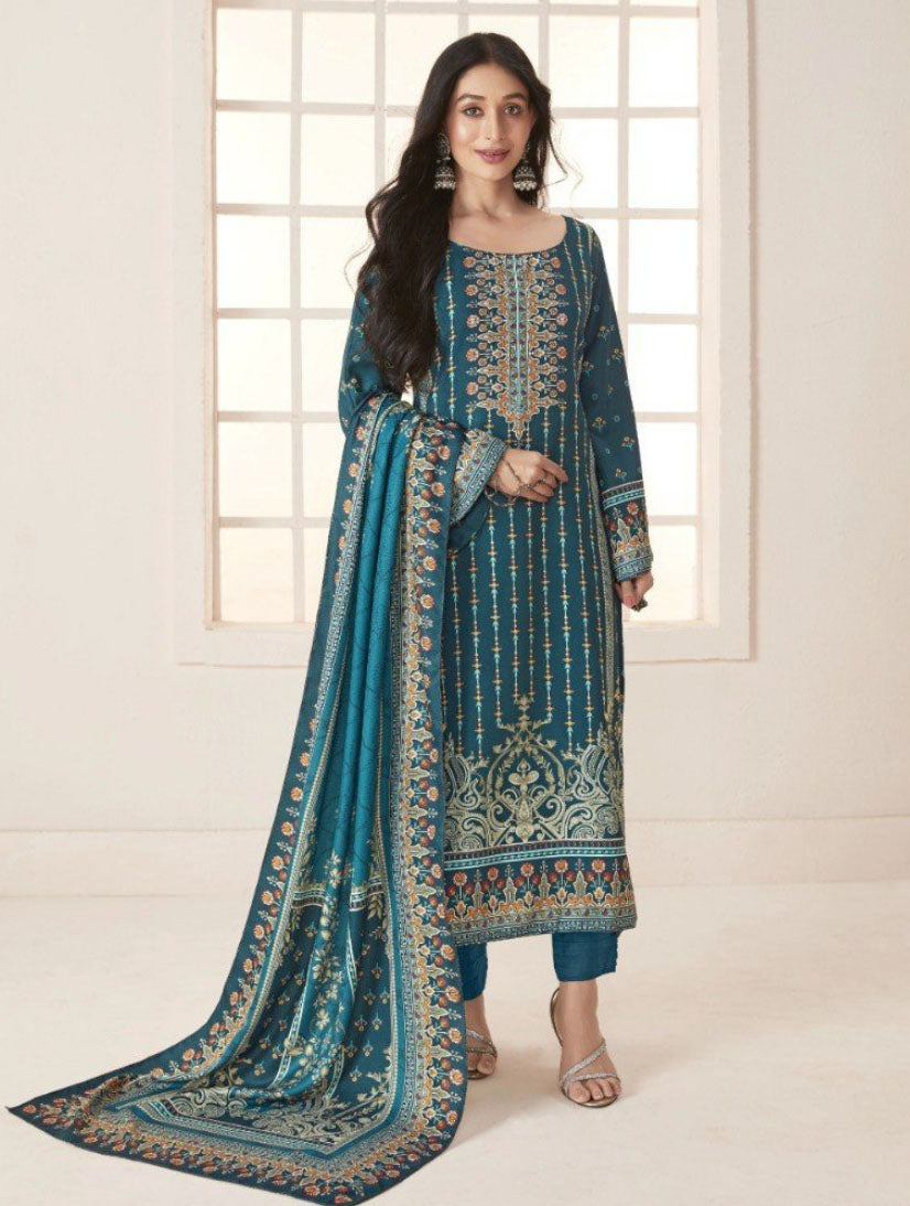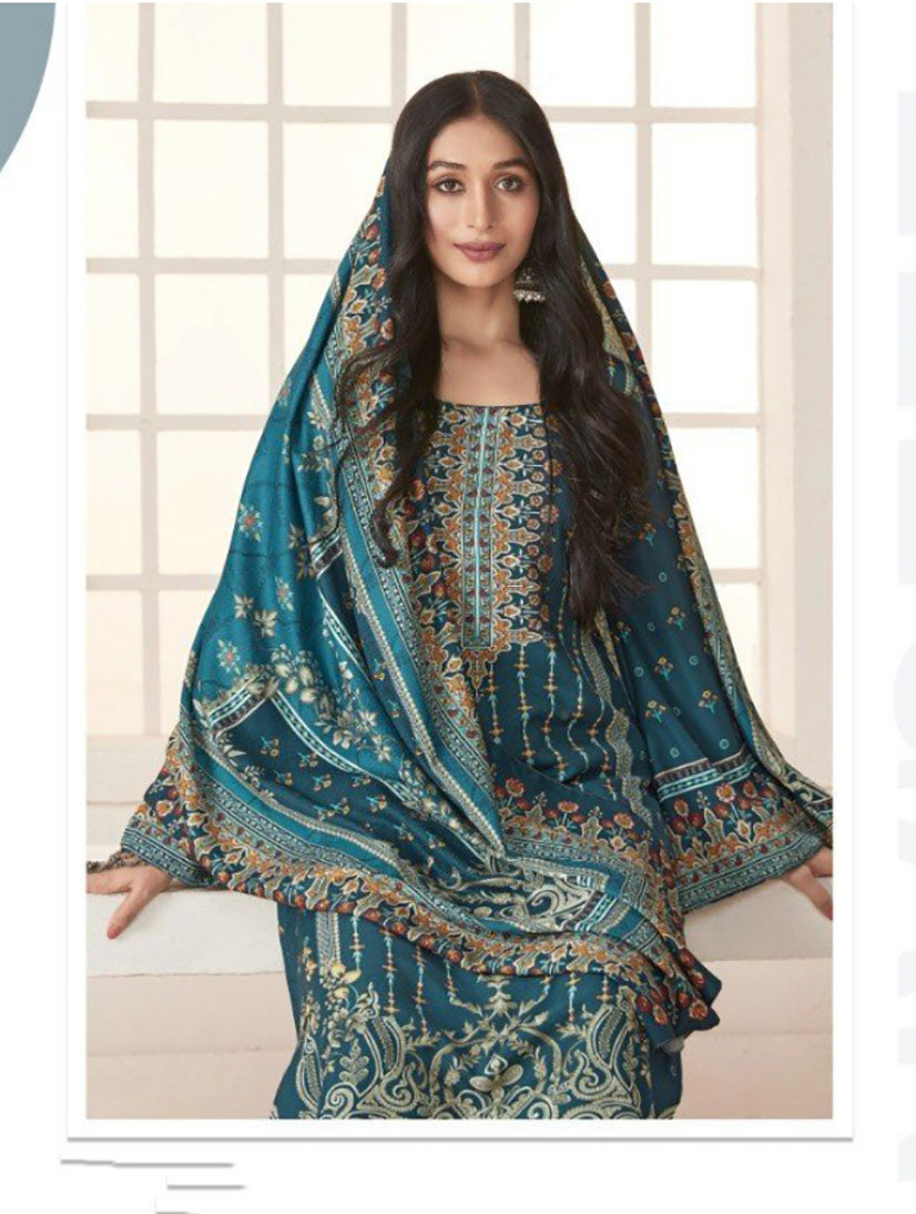 Yesfab Pakistani Print Teal Green Winter Woolen Suits Dress Material