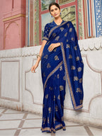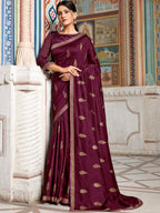 Zari Work With Embroidery Lace Dark Brown Cotton Silk Saree