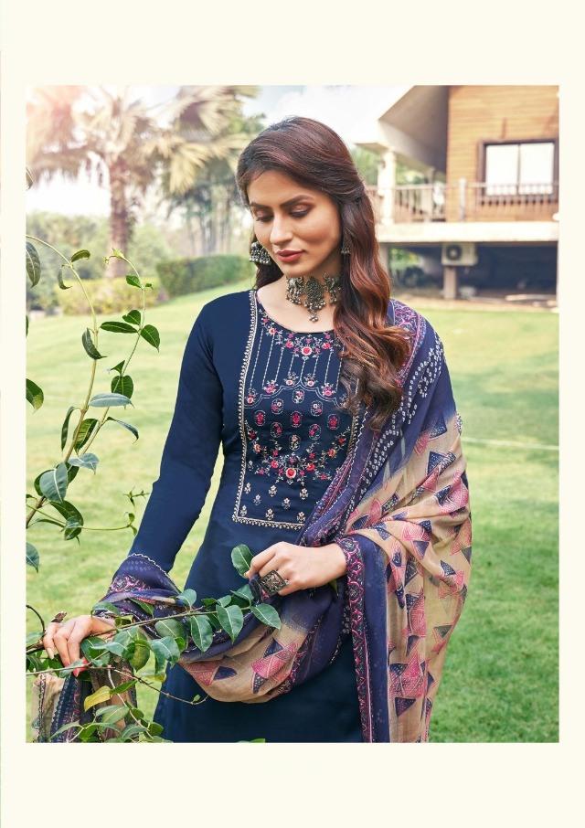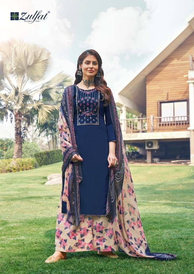 Zulfat Designer Women Unstitched cotton salwar suits Dark Blue
