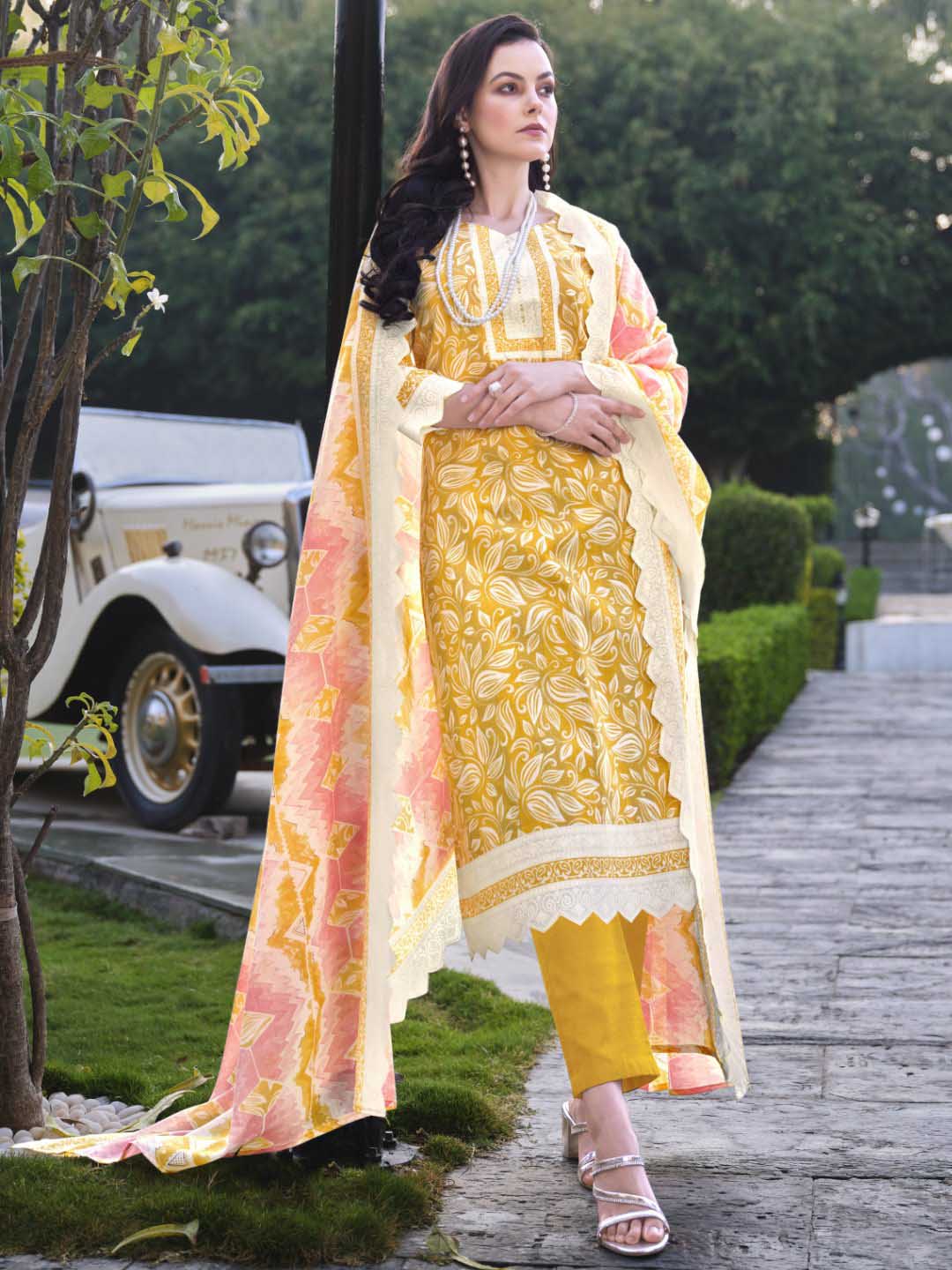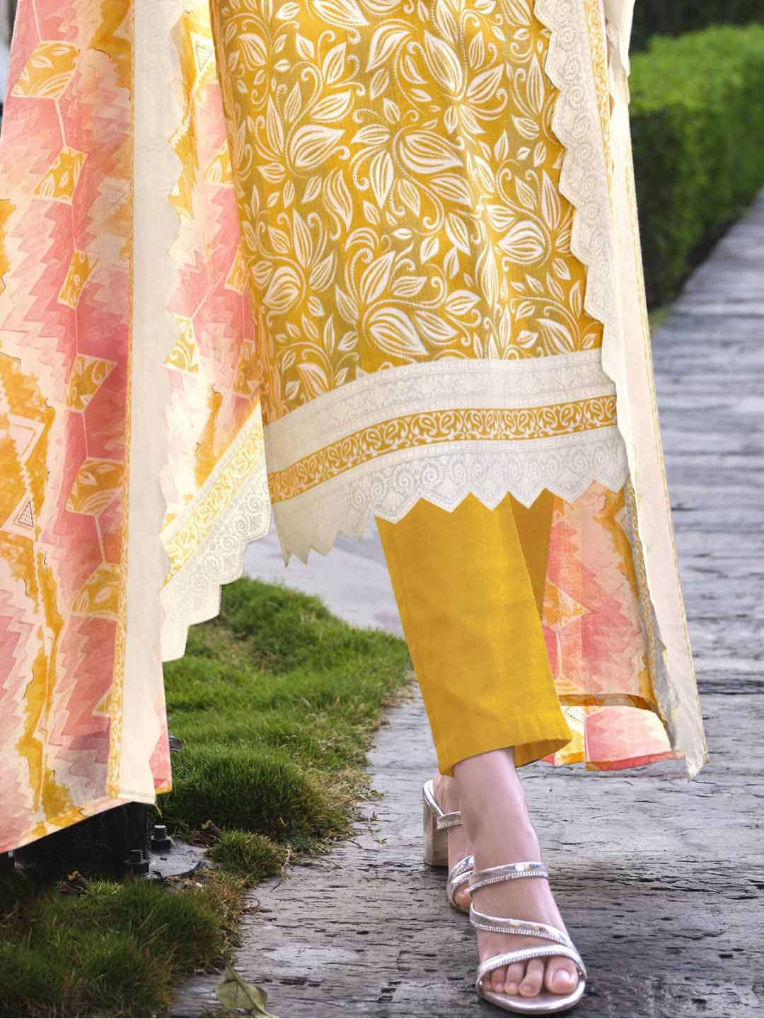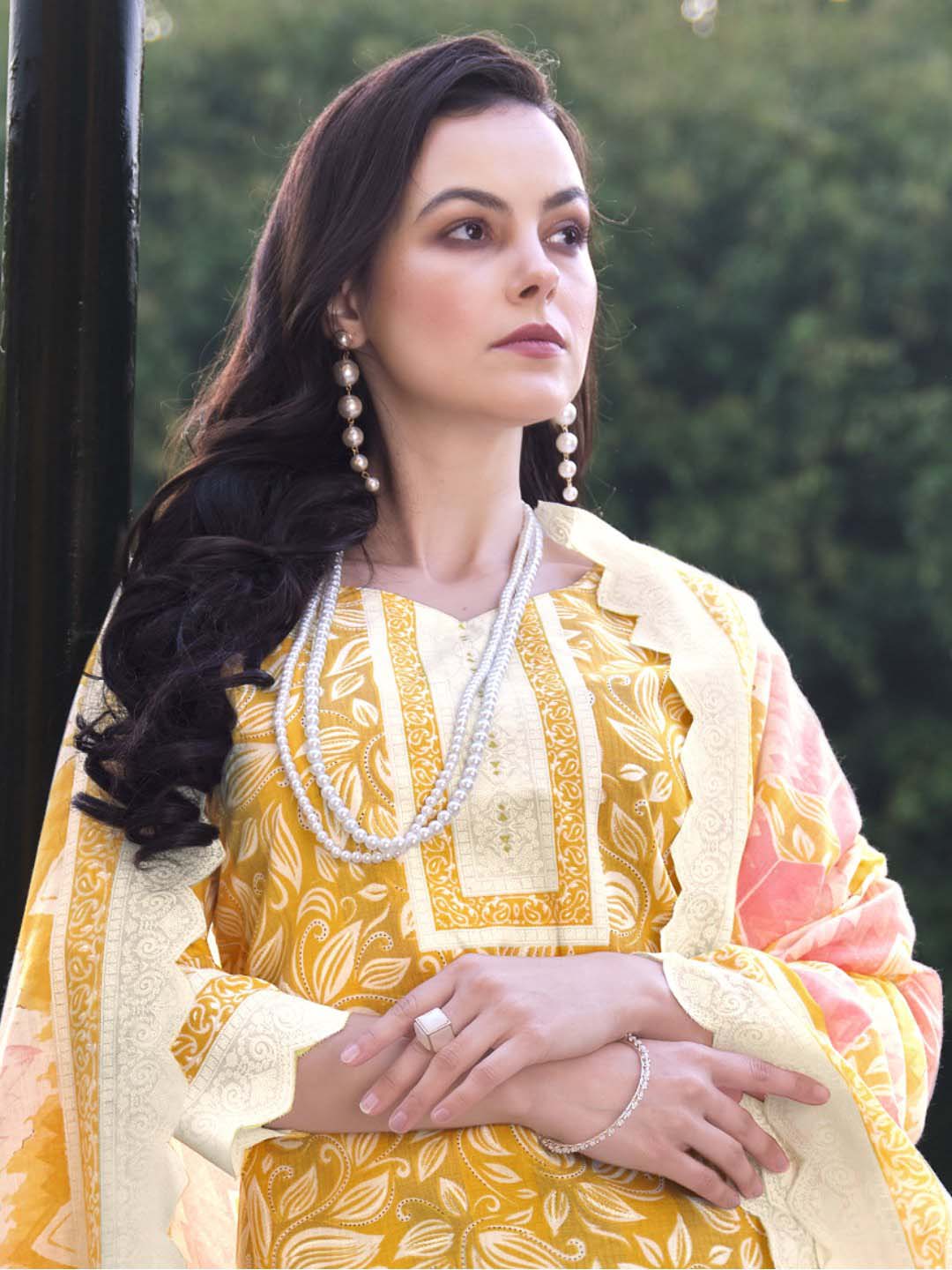 Zulfat Yellow Unstitched Cotton Suit Material for Women with Dupatta